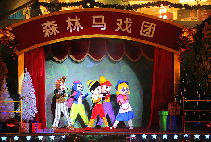 在28日晩《高德 • 木偶奇遇记》舞台剧暖场活动中,舞台上萌翻了的蘑菇小屋、七彩房子,碧蓝的海滩,张大嘴巴的可爱鲸鱼,逼真的植物造型,童趣 十足的圣诞梦幻马戏台……炫丽精致的舞台设计宛如一个生气盎然的童话殿堂。剧中可爱华丽的人偶造型、绘声绘色的圣诞歌舞表演,灯光跳跃的梦幻剧场让前来观 赏的每一位观众耳目一新。