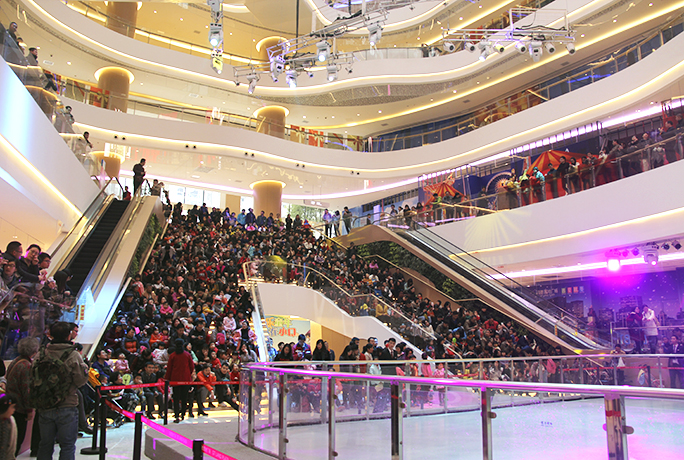 12月19日,高德置地广场再次隆重推出震撼全城的艺术表演活动,“高德•北国冰上芭蕾”表演在高德置地广场冬广场华丽登场。这场时尚高雅、经典唯美且拥有超强表演团体阵容的表演开创了广州首个在购物中心真冰芭蕾表演的历史。据了解,本次活动的真冰场地建设工程复杂,完整的冰场建设耗时一个月的时间,厚度达5厘米的真冰场地历经一层一层洒水冰冻而成;另外,冬广场内大剧院级的灯光和音响和6层楼高、12.6米宽的广州城内面积最大的至高端的LED电子屏设备将舞台营造成一个顶级的豪华剧场,将全国购物中心罕见的顶级舞美设施首次呈现在世人的面前,冰场上方被上百盏各种特效舞美灯光包围,使得晶莹剔透的真冰舞台折射出绚丽夺目的瑰丽光彩。在活动当天,由国外滑冰顶尖演员组成的专业表演团队联合演出,他们凭借超高难度的炫美舞姿,在曼妙动听的音乐中和在重金打造的剧院式真冰舞台上完成了精彩绝伦的表演秀,赢得了现场雷鸣般经久不息的掌声。