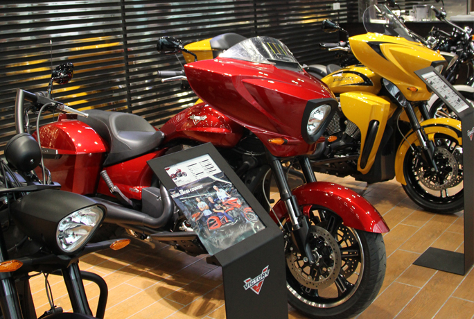 记者在胜利摩托车广州CBD展厅看到,展厅面积超过500平方米,设置机车展示区、服饰展示区、咖啡区、车主活动区等。美国胜利摩托车(广州)总经理袁启聪说的一句话很有意思:“我们不是在卖车,只是在胜利车主的心中,装了一扇新的窗户”。正因为拥有全新的理念与实力,使得VICTORY胜利摩托车连续七年蝉联J.D.POWER北美重型摩托车用户骑乘满意度第一。